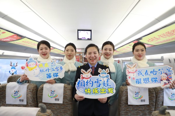 12月23日,由8节车厢组成、充满冰雪元素的G3512次“雪娃”号列车从鸡西西站出发,前往北京。在哈睦高铁开通七周年之际,这趟由中国铁路哈尔滨局集团公司(以下简称“哈局集团公司”)打造的冰雪主题列车,成为一张动人的“冰雪名片”,带领旅客沉浸龙江冰雪文化。